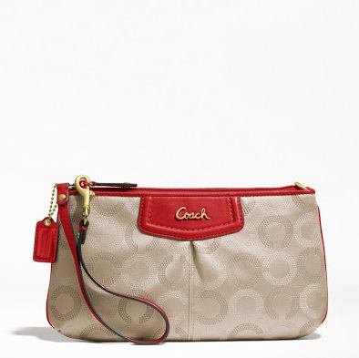 See all customer reviews...Authentic Coach Ashley Dotted Op Art Large Wristlet Khaki Cherry. Reviewed by Sandy L. Rating: