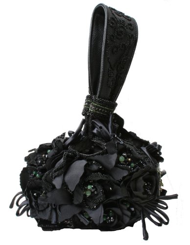 Mary Frances Moondance Black Floral Wristlet Handbag