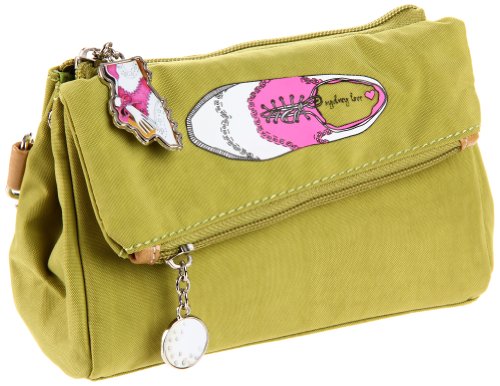 Have been through many wristlets and so far this one is the best design. The top of the wide section unsnaps to give freer access or to allow you to cram in bulkier stuff. The tall foldover outer pocket is a great place to put a flat wallet. This is a fantastic compromise between a wristlet/wallet and a small purse. Fits: flat wallet, foundation round, lipstick, makeup brush, cell phone, keys, pocket pack of kleenex. Yet small enough to throw inside a regular sized purse or diaper bag. Really happy to have this!