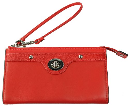 Coach Penelope Leather Zippy Wristlet comes in a vibrant red leather that will give your ensemble an energetic pop. Well made with genuine cowhide leather and silver tone hardware, the Coach Penelope Leather Zippy Wristlet has a small arsenal of interior features that will provide much needed functionality without being too obvious about it. This wristlet is modestly small and proportionate and would kill with a white or light khaki outfit with a matching pair of red heels.